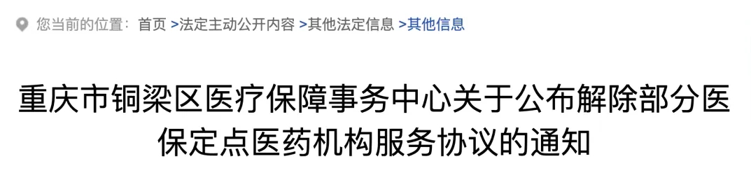6月25日,重慶市銅梁區(qū)醫(yī)療保障事務(wù)中心發(fā)布《公布解除部分醫(yī)保定點(diǎn)醫(yī)藥機(jī)構(gòu)服務(wù)協(xié)議的通知》,130家定點(diǎn)醫(yī)藥機(jī)構(gòu)因不符合準(zhǔn)入條件將不再續(xù)簽醫(yī)保定點(diǎn)服務(wù)協(xié)議,其中62家為定點(diǎn)醫(yī)療機(jī)構(gòu)。